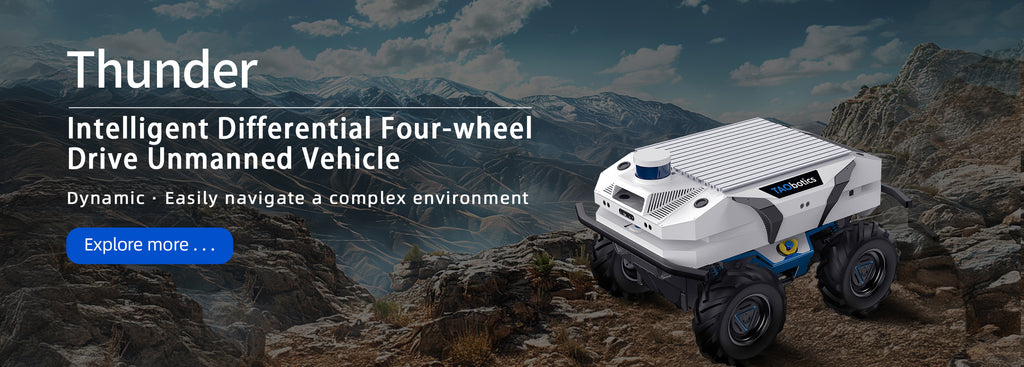 Интеллектуальный полноприводный беспилотный автомобиль Thunder использует дифференциальное шасси, которое подходит для таких сред, как поля, фабрики, парки и пустыни. Интегрированный одометр, LiDAR и визуальная камера, поддерживающая SLAM, позиционную навигацию и распознавание объектов, подходит для обучения и исследований.